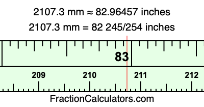 As promised above, we also have the answer to 2107.3 mm in inches in decimal form. Although the fractional answer above is exact, the decimal answer may be rounded if necessary:
