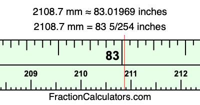 Here is how to convert 2108.7 mm to inches. We will give you the fractional answer, the decimal answer, and illustrate the answer on our tape measure.