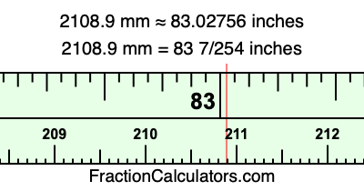 Here is how to convert 2108.9 mm to inches. We will give you the fractional answer, the decimal answer, and illustrate the answer on our tape measure.