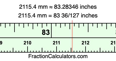 Here is how to convert 2115.4 mm to inches. We will give you the fractional answer, the decimal answer, and illustrate the answer on our tape measure.