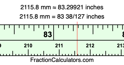 Here is how to convert 2115.8 mm to inches. We will give you the fractional answer, the decimal answer, and illustrate the answer on our tape measure.