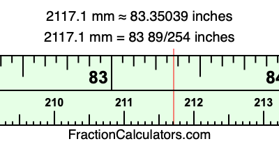 As promised above, we also have the answer to 2117.1 mm in inches in decimal form. Although the fractional answer above is exact, the decimal answer may be rounded if necessary:
