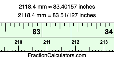 Here is how to convert 2118.4 mm to inches. We will give you the fractional answer, the decimal answer, and illustrate the answer on our tape measure.