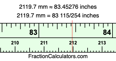 Here is how to convert 2119.7 mm to inches. We will give you the fractional answer, the decimal answer, and illustrate the answer on our tape measure.