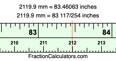 Here is how to convert 2119.9 mm to inches. We will give you the fractional answer, the decimal answer, and illustrate the answer on our tape measure.