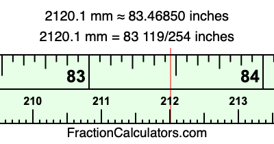 Here is how to convert 2120.1 mm to inches. We will give you the fractional answer, the decimal answer, and illustrate the answer on our tape measure.