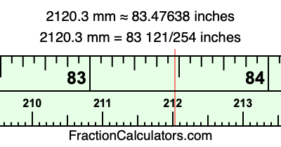 Here is how to convert 2120.3 mm to inches. We will give you the fractional answer, the decimal answer, and illustrate the answer on our tape measure.