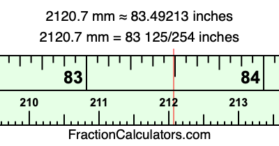 Here is how to convert 2120.7 mm to inches. We will give you the fractional answer, the decimal answer, and illustrate the answer on our tape measure.