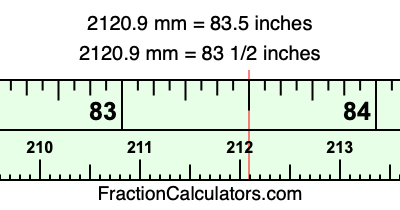 Here is how to convert 2120.9 mm to inches. We will give you the fractional answer, the decimal answer, and illustrate the answer on our tape measure.