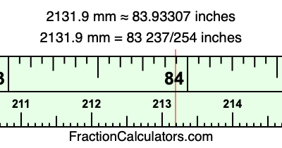 Here is how to convert 2131.9 mm to inches. We will give you the fractional answer, the decimal answer, and illustrate the answer on our tape measure.