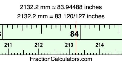 Here is how to convert 2132.2 mm to inches. We will give you the fractional answer, the decimal answer, and illustrate the answer on our tape measure.