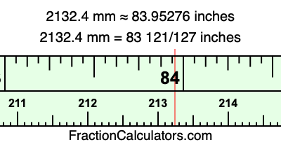 Here is how to convert 2132.4 mm to inches. We will give you the fractional answer, the decimal answer, and illustrate the answer on our tape measure.