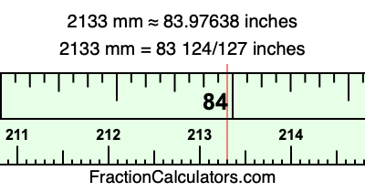 Here is how to convert 2133 mm to inches. We will give you the fractional answer, the decimal answer, and illustrate the answer on our tape measure.