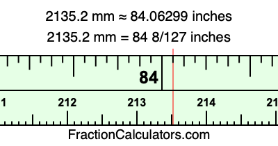 Here is how to convert 2135.2 mm to inches. We will give you the fractional answer, the decimal answer, and illustrate the answer on our tape measure.