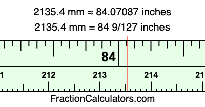 Here is how to convert 2135.4 mm to inches. We will give you the fractional answer, the decimal answer, and illustrate the answer on our tape measure.