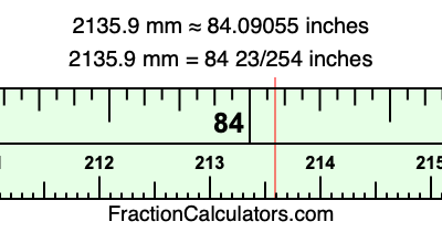 Here is how to convert 2135.9 mm to inches. We will give you the fractional answer, the decimal answer, and illustrate the answer on our tape measure.