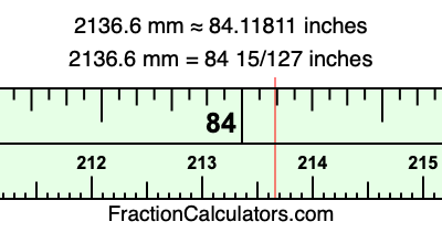 Here is how to convert 2136.6 mm to inches. We will give you the fractional answer, the decimal answer, and illustrate the answer on our tape measure.