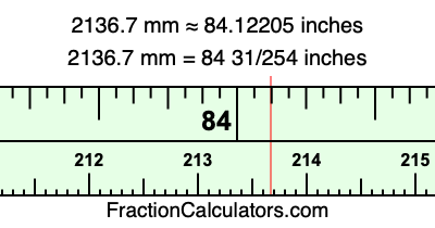 Here is how to convert 2136.7 mm to inches. We will give you the fractional answer, the decimal answer, and illustrate the answer on our tape measure.