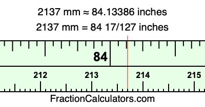 Here is how to convert 2137 mm to inches. We will give you the fractional answer, the decimal answer, and illustrate the answer on our tape measure.