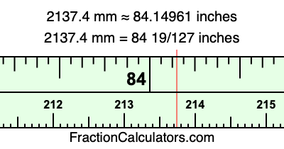 Here is how to convert 2137.4 mm to inches. We will give you the fractional answer, the decimal answer, and illustrate the answer on our tape measure.