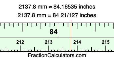 Here is how to convert 2137.8 mm to inches. We will give you the fractional answer, the decimal answer, and illustrate the answer on our tape measure.
