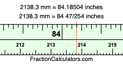 Here is how to convert 2138.3 mm to inches. We will give you the fractional answer, the decimal answer, and illustrate the answer on our tape measure.