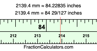 Here is how to convert 2139.4 mm to inches. We will give you the fractional answer, the decimal answer, and illustrate the answer on our tape measure.