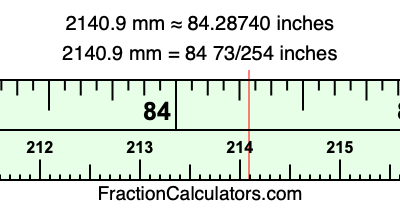 Here is how to convert 2140.9 mm to inches. We will give you the fractional answer, the decimal answer, and illustrate the answer on our tape measure.