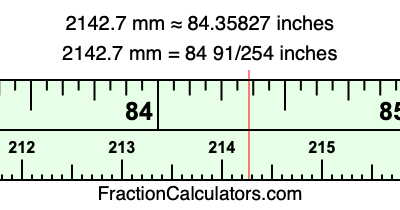 Here is how to convert 2142.7 mm to inches. We will give you the fractional answer, the decimal answer, and illustrate the answer on our tape measure.