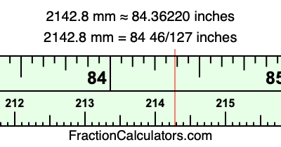 Here is how to convert 2142.8 mm to inches. We will give you the fractional answer, the decimal answer, and illustrate the answer on our tape measure.