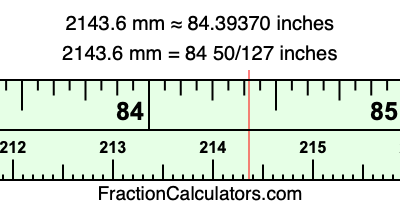 Here is how to convert 2143.6 mm to inches. We will give you the fractional answer, the decimal answer, and illustrate the answer on our tape measure.