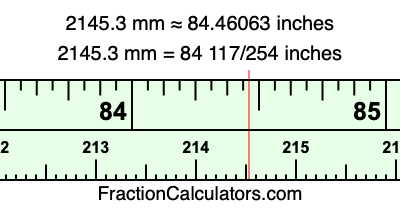 Here is how to convert 2145.3 mm to inches. We will give you the fractional answer, the decimal answer, and illustrate the answer on our tape measure.
