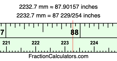 Here is how to convert 2232.7 mm to inches. We will give you the fractional answer, the decimal answer, and illustrate the answer on our tape measure.