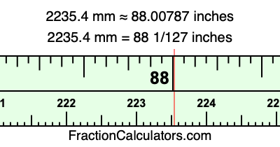 Here is how to convert 2235.4 mm to inches. We will give you the fractional answer, the decimal answer, and illustrate the answer on our tape measure.