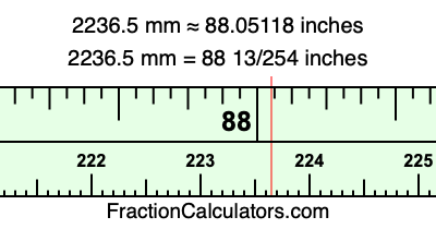 Here is how to convert 2236.5 mm to inches. We will give you the fractional answer, the decimal answer, and illustrate the answer on our tape measure.