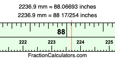 Here is how to convert 2236.9 mm to inches. We will give you the fractional answer, the decimal answer, and illustrate the answer on our tape measure.