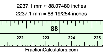 As promised above, we also have the answer to 2237.1 mm in inches in decimal form. Although the fractional answer above is exact, the decimal answer may be rounded if necessary: