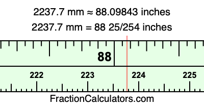 Here is how to convert 2237.7 mm to inches. We will give you the fractional answer, the decimal answer, and illustrate the answer on our tape measure.