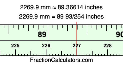 Here is how to convert 2269.9 mm to inches. We will give you the fractional answer, the decimal answer, and illustrate the answer on our tape measure.