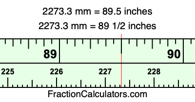 Here is how to convert 2273.3 mm to inches. We will give you the fractional answer, the decimal answer, and illustrate the answer on our tape measure.