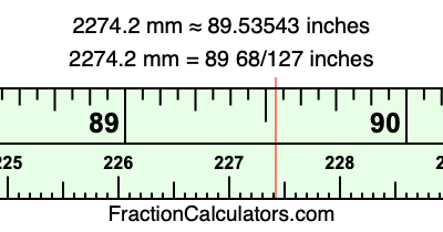 Here is how to convert 2274.2 mm to inches. We will give you the fractional answer, the decimal answer, and illustrate the answer on our tape measure.