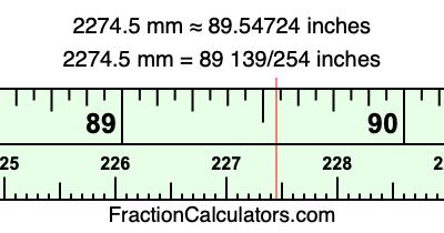 Here is how to convert 2274.5 mm to inches. We will give you the fractional answer, the decimal answer, and illustrate the answer on our tape measure.