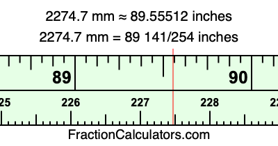 Here is how to convert 2274.7 mm to inches. We will give you the fractional answer, the decimal answer, and illustrate the answer on our tape measure.