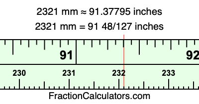 Here is how to convert 2321 mm to inches. We will give you the fractional answer, the decimal answer, and illustrate the answer on our tape measure.