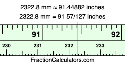 Here is how to convert 2322.8 mm to inches. We will give you the fractional answer, the decimal answer, and illustrate the answer on our tape measure.