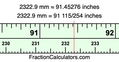 As promised above, we also have the answer to 2322.9 mm in inches in decimal form. Although the fractional answer above is exact, the decimal answer may be rounded if necessary: