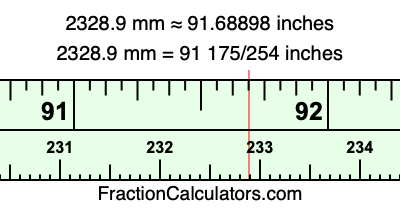 As promised above, we also have the answer to 2328.9 mm in inches in decimal form. Although the fractional answer above is exact, the decimal answer may be rounded if necessary: