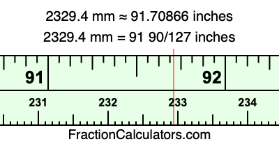Here is how to convert 2329.4 mm to inches. We will give you the fractional answer, the decimal answer, and illustrate the answer on our tape measure.