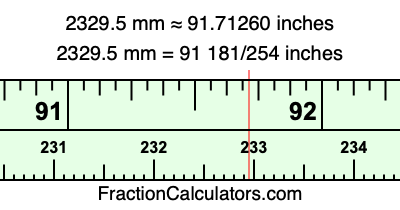 Here is how to convert 2329.5 mm to inches. We will give you the fractional answer, the decimal answer, and illustrate the answer on our tape measure.