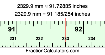 Here is how to convert 2329.9 mm to inches. We will give you the fractional answer, the decimal answer, and illustrate the answer on our tape measure.